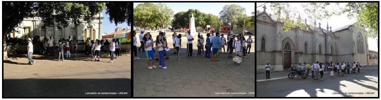 In September, 2011, the proposal of the interpretive route proposal for heritage education purposes was carried out with 8th and 9th graders from the state school Irene Ortega, from Mirassol D´Oeste (Figure 9). These activities were arranged by an agreement between the schools and the University.